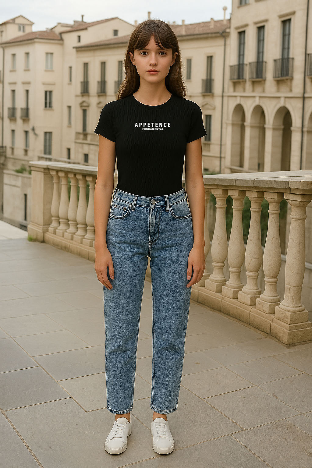 This APPETENCE ribbed t-shirt, crafted from a comfortable blend of polyester and cotton, is perfect for the European summer. Its black and white color scheme adds a touch of sophistication, ensuring you look stylish and feel at ease while staying cool. Upgrade your wardrobe with this must-have piece.